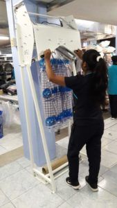 Se tratan de dos máquinas que se encargan del lavado y secado, que utilizan agua para la limpieza y detergente biodegradable; una desmanchadora, una planchadora y una empacadora que se encargan de proteger las prendas de vestir con el corte perfecto de acuerdo a la medida de la misma y así no se desperdicia la funda plástica.