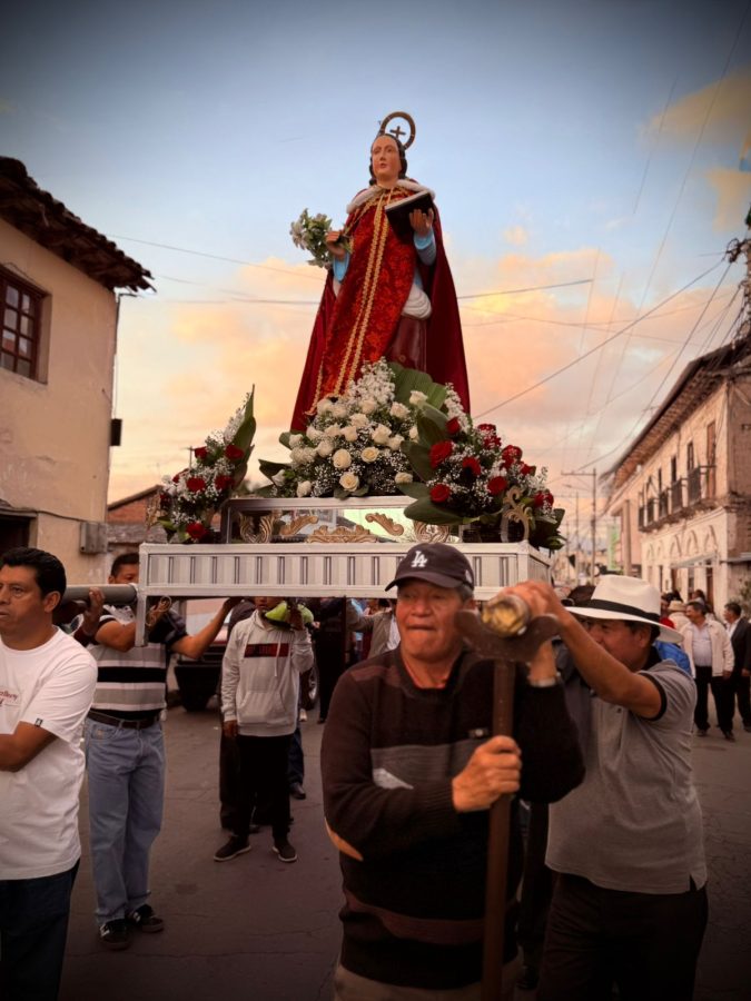 En el barrio San Juan, los juegos pirotécnicos y los castillos llenaron de alegría y color la noche chambeña. La banda de pueblo acompañó la velada festiva y religiosa, creando un ambiente de celebración y fe.