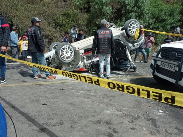 Durante la etapa ambateña de la Vuelta a la República ÔÇô Rally Ecuador, un vehículo de competición perdió el control en el ingreso al sector de Aguaján y se estrelló contra una estructura cercana, donde un grupo de aficionados seguía la carrera.