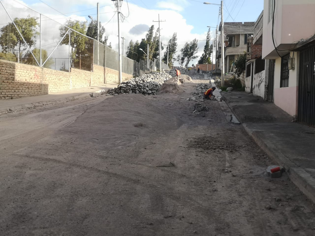 Debido al tiempo y la extensión de las calles, existe dos grupos de trabajo desplazados en la zona, con el objetivo de concluir en el tiempo requerido. Víctor Tupiza, encargado de la obra, manifestó que hasta el momento no ha existido ningún contratiempo, incluso, los moradores han servido de apoyo para no interrumpir el proyecto que cuentan con un avance del 60%. De acuerdo a la planificación, autoridades entregarán la obra en julio.