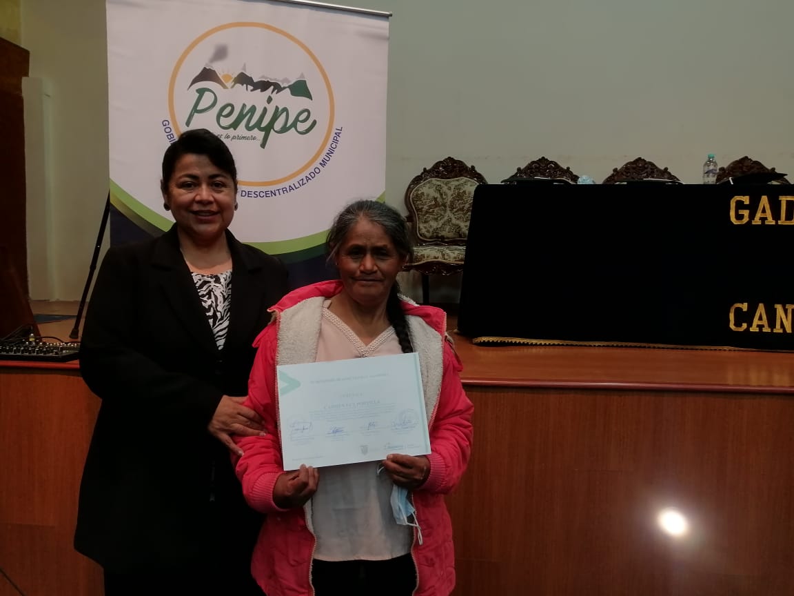 El Gobierno Autónomo Descentralizado Municipal del Cantón Penipe realizó ayer la entrega de los certificados a las 58 personas quienes fueron parte de la capacitación brindada por parte del MAGAP, INIAP y técnicos del GADMP para que los agricultores puedan manejar las plagas en sus cultivos.┬á