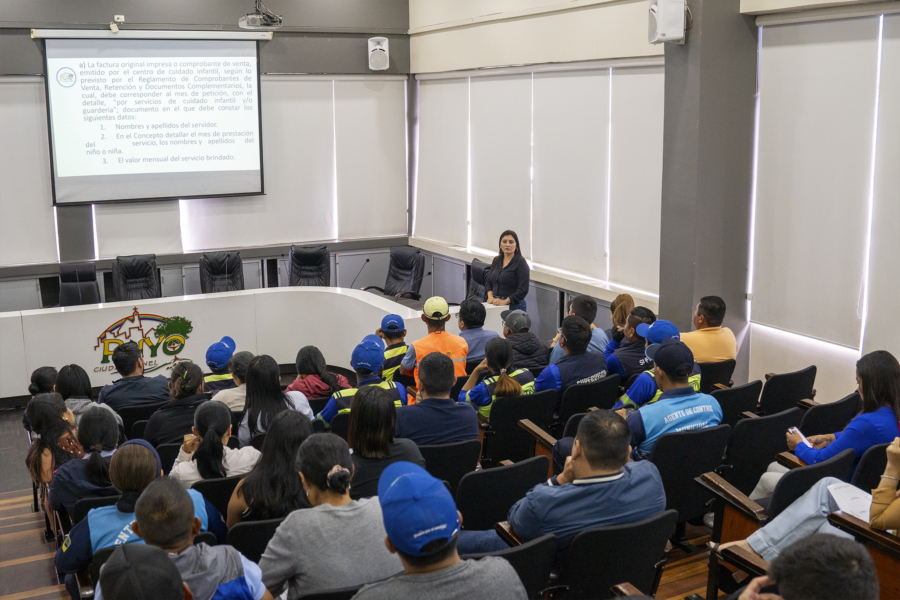 El encuentro se desarrolló en el Salón de la Ciudad “Fidel Rodríguez”, donde los directores de las áreas de Talento Humano, Financiero y Jurídico expusieron los requisitos, procedimientos y alcances de este beneficio que busca apoyar la conciliación entre la vida laboral y familiar de los servidores públicos.