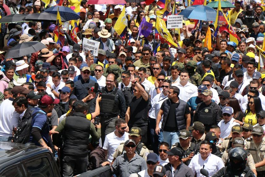 En agosto, el presidente Noboa encabezó una marcha multitudinaria en Quito bajo el lema de defensa de la seguridad y la gobernabilidad. En la movilización, algunos carteles señalaban directamente a jueces de la Corte, lo que fue interpretado como un intento de presión política.