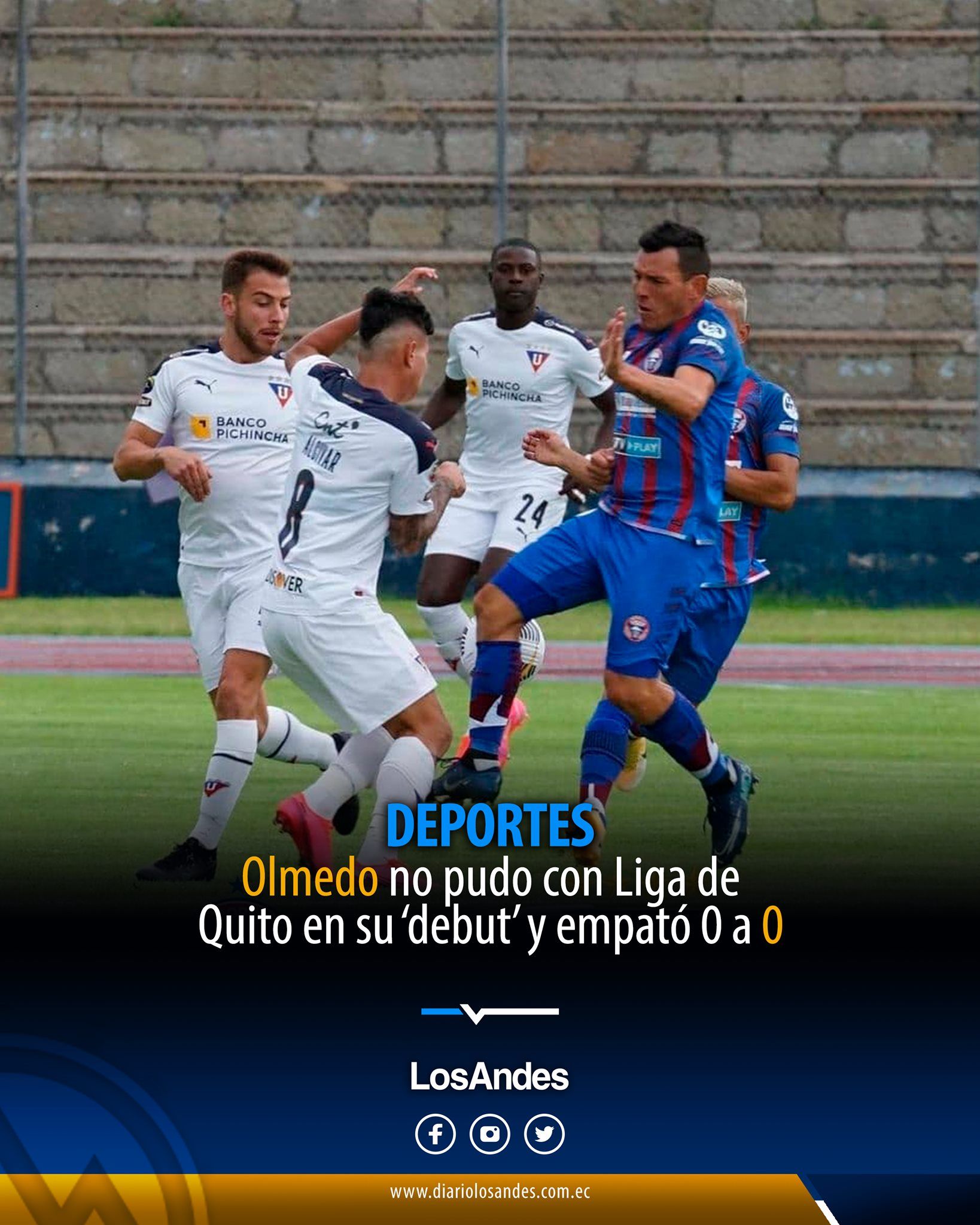 Un empate logró CD Olmedo ante Liga de Quito a cero goles, aunque el equipo quiteño fue el que dominó. El ídolo riobambeño, con orden y buena disposición táctica, mantuvo el resultado a cero goles.