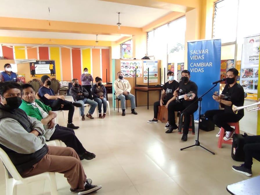 Este lunes 24 de mayo de 2021, la OJE se presentó en el Albergue Temporal Municipal Riobamba, gracias a la colaboración de la Municipalidad de Riobamba con las Naciones Unidas (NU) y el Programa Mundial de Alimentos (PMA) como ayuda a las personas albergadas con actividades recreativas enfocadas en temas culturales.