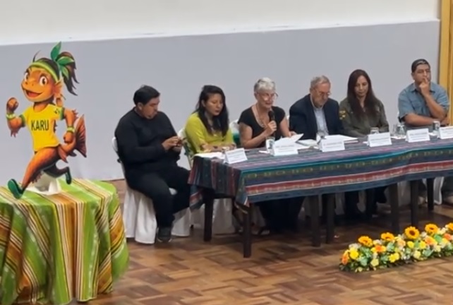 En el conversatorio participaron organizaciones sociales y pueblos originarios. Diana Chávez, representante de PAKKIRU, señaló que la Nacionalidad Kichwa de Pastaza ha declarado su territorio como Kausai Sacha (selva viviente), reafirmando su corresponsabilidad en la defensa del río Puyo, cuya contaminación impacta directamente a las comunidades, especialmente a la Comuna San Jacinto.”
