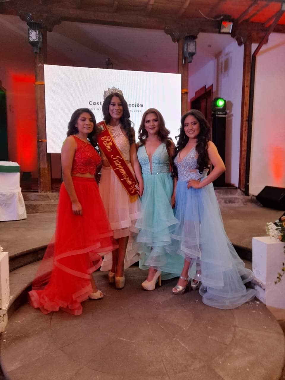 Las candidatas Alison Campos, Pamela Herrera, Glenda Telenchana y Paola Tubón en el evento realizado en la Quinta del escritor Juan León Mera.