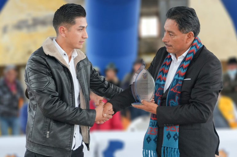 Durante el acto, las comunidades entregaron al prefecto una placa de reconocimiento en muestra de agradecimiento por su compromiso con el desarrollo del campo y el apoyo directo a los sectores más necesitados.