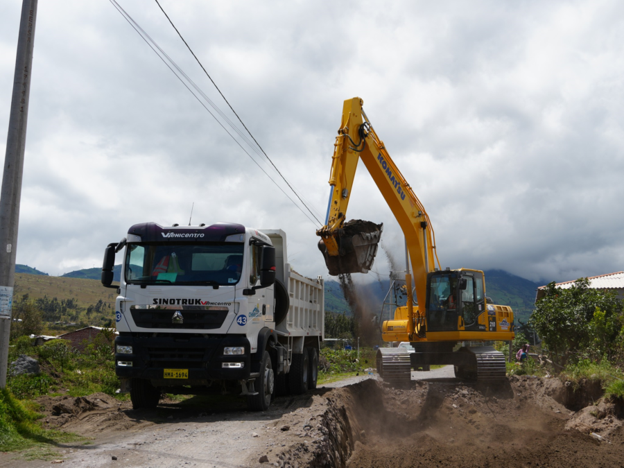 Uno de los frentes de trabajo se ubica en el ramal de acceso a la comunidad de Chingazo Bajo, específicamente en el kilómetro 3 de la vía. En este sector, ya se han iniciado las tareas de excavación con el apoyo de maquinaria especializada, incluyendo una excavadora, tres volquetas y equipos adicionales para compactar el terreno.┬á