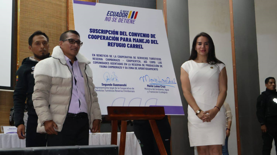 El Ministerio de Ambiente, Agua y Transición Ecológica del Ecuador, liderado por la ministra María Luisa Cruz, suscribió un importante convenio con nueve comunidades de la Sierra Centro para el manejo del Refugio Carrel, ubicado en la emblemática Reserva de Producción de Fauna Chimborazo.