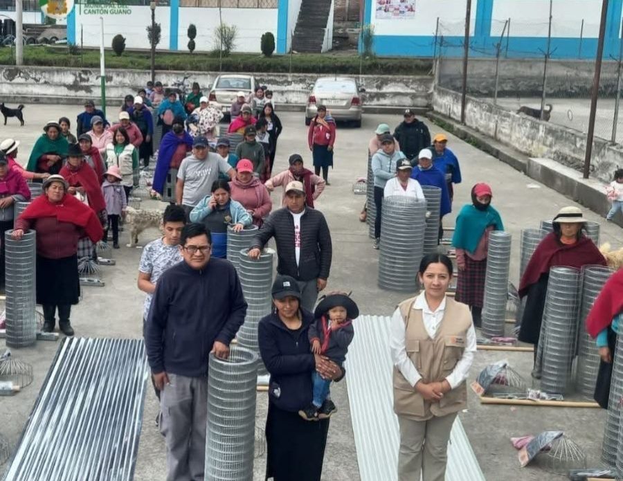 La jornada se desarrolló el 12 de febrero y fue organizada con el respaldo del Municipio de Guano, la organización humanitaria Ayuda en Acción y la Unión Europea. Durante el acto se distribuyeron insumos destinados a fortalecer emprendimientos familiares, especialmente liderados por madres, quienes recibieron materiales para la construcción de cuyeras, entre ellos láminas de zinc, malla metálica y herramientas agrícolas.