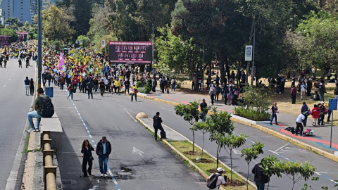 Este martes 12 de agosto, Quito se vio envuelta en una jornada de alta tensión mientras se desarrollaba una marcha liderada por el presidente Daniel Noboa hacia la Corte Constitucional. A lo largo del recorrido, se colocaron al menos tres vallas que exhibían los rostros de los nueve jueces constitucionales junto con la frase: “Estos son los jueces que nos están robando la paz. Firmaron contra leyes que nos protegían”.