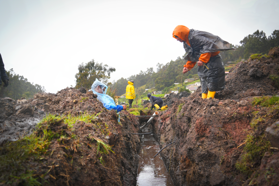 La Prefectura de Chimborazo, ha provisto las tuberías necesarias y ha puesto a disposición maquinaria especializada para labores de excavación y adecuación del terreno.