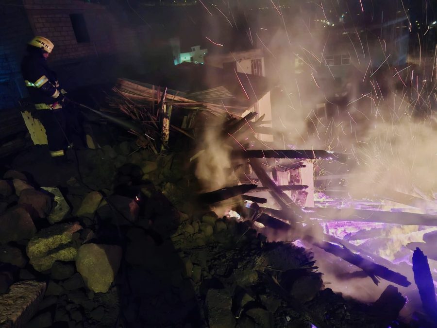 Personal del Cuerpo de Bomberos de Guamote sofocó un incendio estructural registrado en el barrio central de la parroquia matriz.