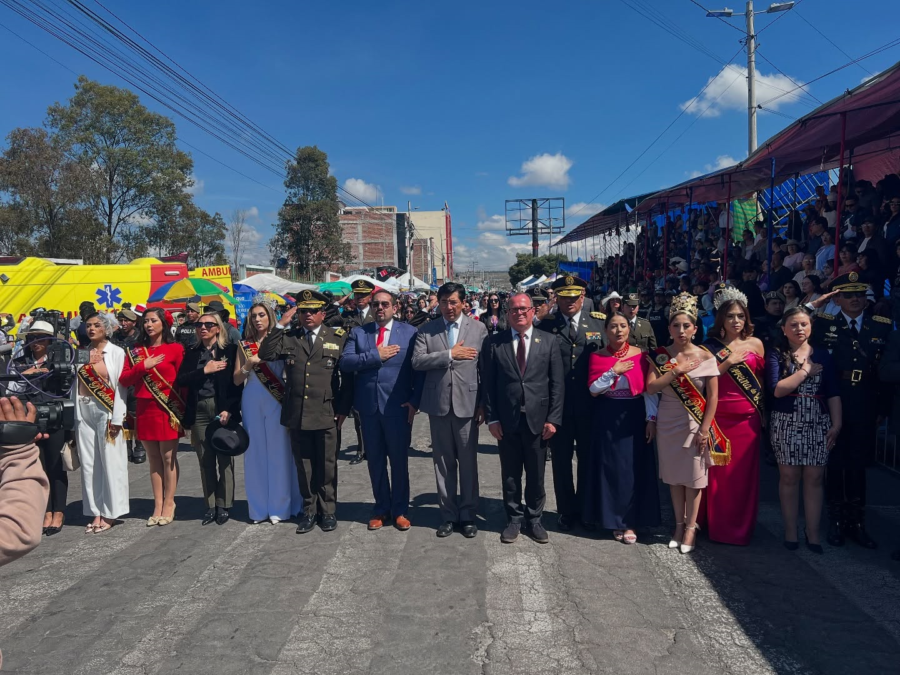 El desfile fue encabezado por autoridades locales, representantes de las Fuerzas Armadas y Policía Nacional, quienes desfilaron con gallardía y marcialidad, rindiendo tributo a los héroes de 1822. A este acto se sumaron con entusiasmo las bandas estudiantiles de los colegios de Riobamba, que llenaron el ambiente de música, color y energía.