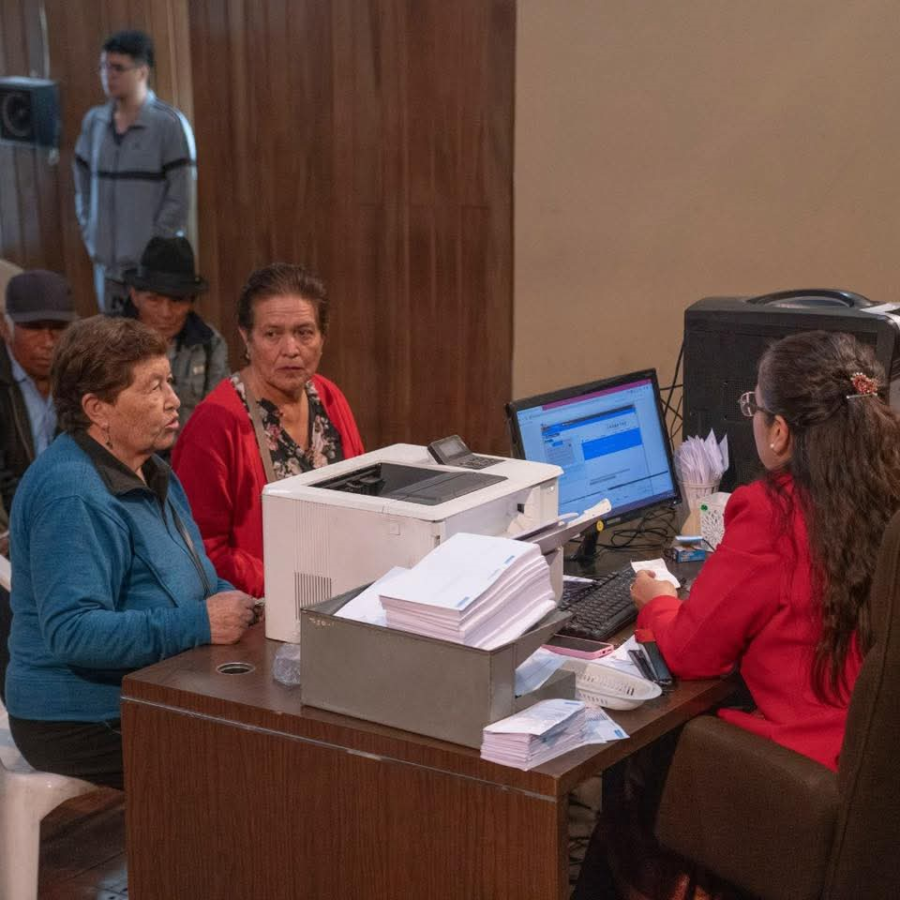 Para los adultos mayores, se ha habilitado una ventanilla exclusiva en el Salón Pedro Vicente Maldonado, donde se ha implementado un sistema que permite que los contribuyentes permanezcan sentados mientras esperan su turno.