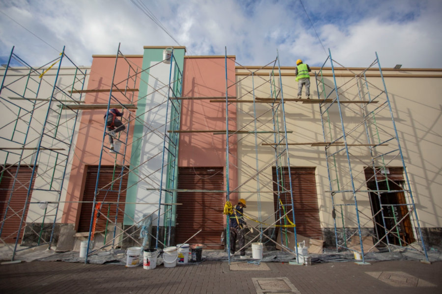El proyecto de mantenimiento de su fachada y pintura alcanza el 70% de ejecución, y con ello, la nueva imagen del edificio comienza a revelarse ante riobambeños, comerciantes y transeúntes del centro histórico.