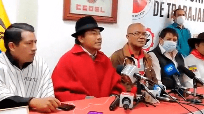 El estado de excepción no los detendrá, dijeron los dirigentes de la Conaie, la Feine, la Fenocin, el Frente Unitario de Trabajadores (FUT) y el Frente Popular, reunidos para la coordinación de esta jornada de protestas. “Aquí no hay presiones ni amenazas”, dijo Leonidas Iza, presidente de la Conaie.