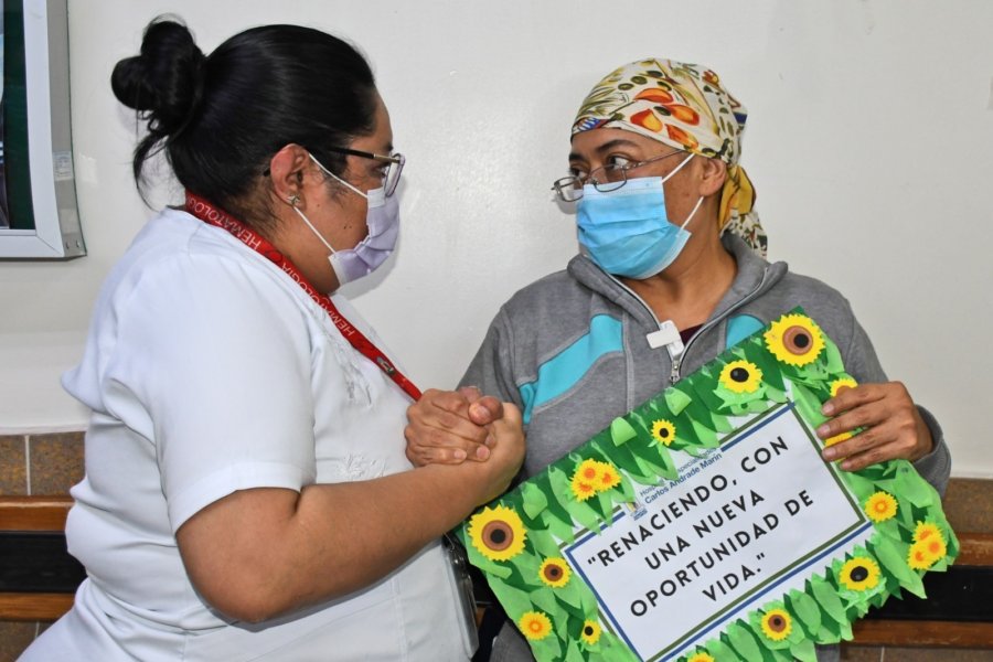 Lorena R., de 49 años, se convierte en un símbolo de esperanza y superación al convertirse en la segunda paciente en ser dada de alta después de someterse a un trasplante de médula ósea en el Hospital de Especialidades Carlos Andrade Marín (HCAM).