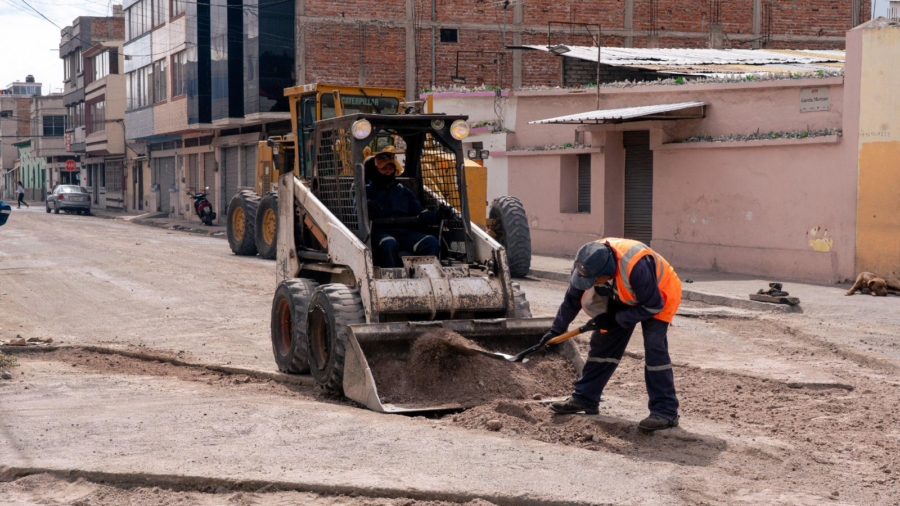 La obra dejó expuesta la base de la vía y generó zanjas, polvo constante y malestar en los riobambeños. Frente a la imposibilidad de ejecutar el reasfaltado inmediato, se optó por una técnica provisional: la reconformación del suelo y estabilización con una mezcla de suelo-cemento.