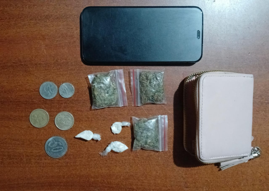 En el bolso, los policías encontraron tres fundas con una sustancia vegetal verdosa y tres envolturas con un polvo blanquecino. Las pruebas de campo confirmaron que se trataba de 11,5 gramos de marihuana y 1,3 gramos de pasta base de cocaína. Según la investigación preliminar, la mujer habría estado involucrada en la comercialización de estas sustancias en el sector.