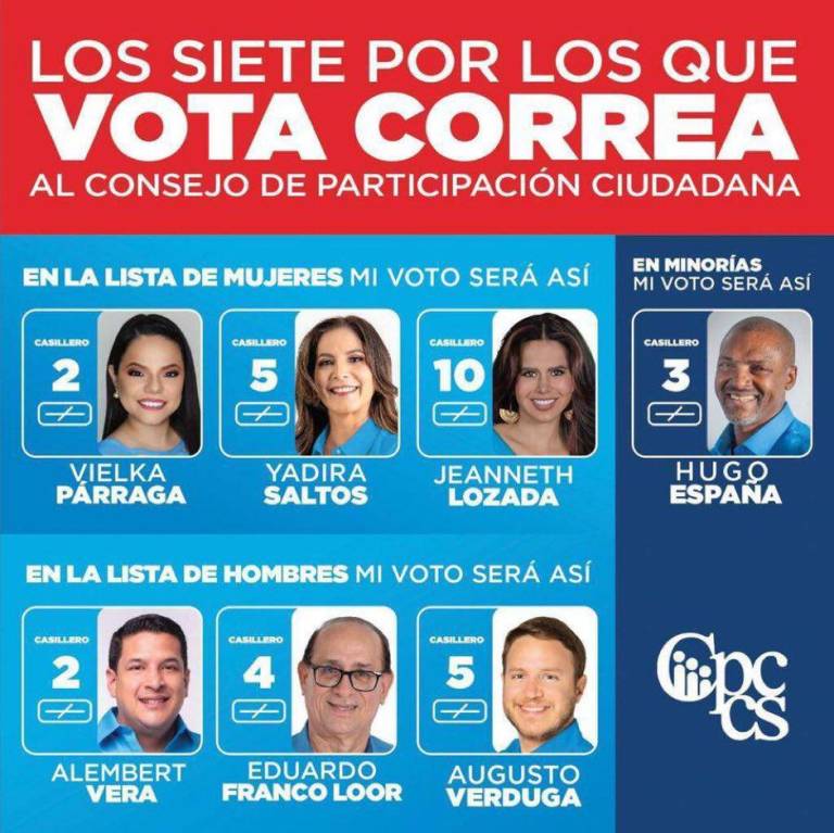 Entre las pruebas presentadas, se incluyeron imágenes y videos en los que se observaba a los consejeros haciendo campaña utilizando los colores del correísmo y participando en eventos junto a figuras destacadas como el expresidente Rafael Correa. Augusto Verduga había sido mencionado como posible candidato del correísmo para futuras elecciones presidenciales, mientras que Eduardo Franco Loor, quien ha mantenido cercanía con la RC, es conocido por su rol como abogado de Jorge Glas y sus vínculos con Luisa González.