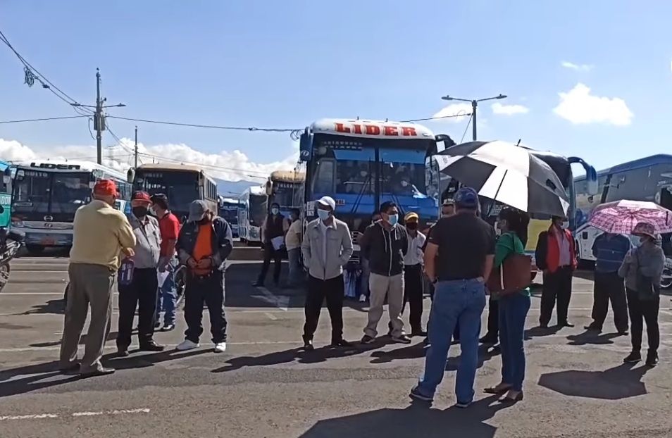 Debido a la pandemia por el COVID-19, los buses cooperados trabajan al 50 por ciento. Los buses que salieron a la protesta fueron los que tenían día libre.