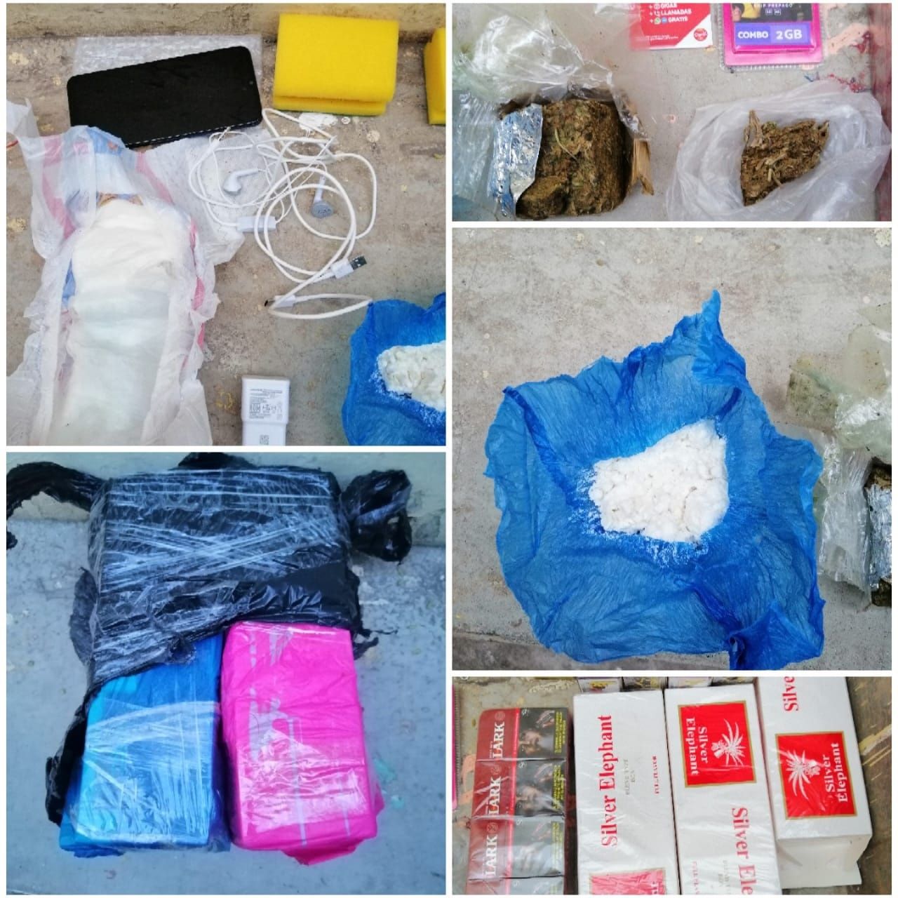 Personal policial que presta la seguridad externa de la cárcel de Riobamba se percató que sujetos no identificados arrojaron un paquete desde la parte lateral del centro de reclusión, pero se quedó atascado en los alambres de púas de la pared. Entre las evidencias estaba: cocaína, marihuana, un celular, etc. (25)┬á