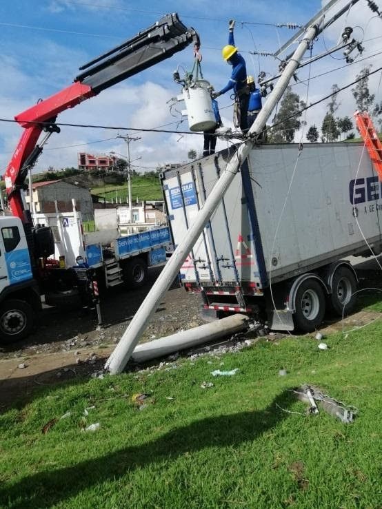 Personal de la Corporación Nacional de Electricidad (CNEL) Bolívar, informó que a consecuencia de este siniestro, en donde se vio involucrado un vehículo, un poste de alumbrado público fue derribado y por consiguiente dejó sin energía eléctrica el sector.