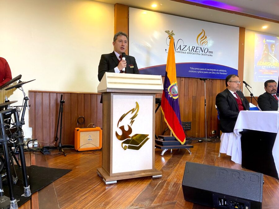 Miguel Ayala, Rector de la Unidad Educativa Cristiana “NAZARENO”, en su discurso de orden expresó: “Con mucho gozo y gratitud a Dios, les doy la más cordial bienvenida al inicio de este nuevo año lectivo. Hoy comenzamos un camino lleno de expectativas, sueños y nuevas oportunidades, pero sobre todo de fe y esperanza en el Señor, quien es nuestra roca y guía.