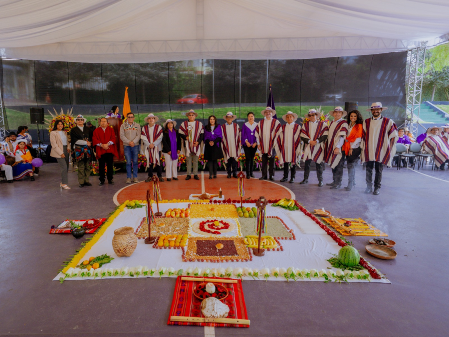 El evento incluyó el ritual ancestral del Inti Raymi, conducido por Enma Fabiola Sánchez Farinango, mujer kichwa de Cotacachi, Imbabura, reconocida líder comunitaria y defensora de los derechos colectivos y la preservación cultural. La ceremonia estuvo acompañada de danzas tradicionales y comparsas que integraron a ambas instituciones priostes en un ambiente de celebración y espiritualidad.