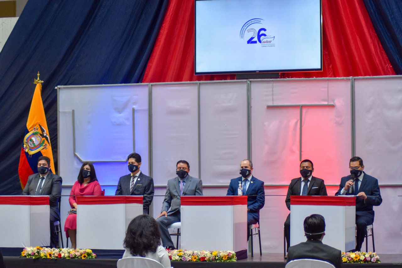 Con la firma de convenios y entrega de reconocimientos, las autoridades de la Universidad Técnica de Cotopaxi (UTC) desarrollaron la sesión solemne por los 26 años de vida institucional. Esta actividad conmemorativa fue realizada el domingo 24 de enero de enero a las 17h00 en el hall del Bloque Académico A, con todas las medidas de bioseguridad, los representantes del Honorable Consejo Universitario de la UTC, dieron inicio al acto solemne.