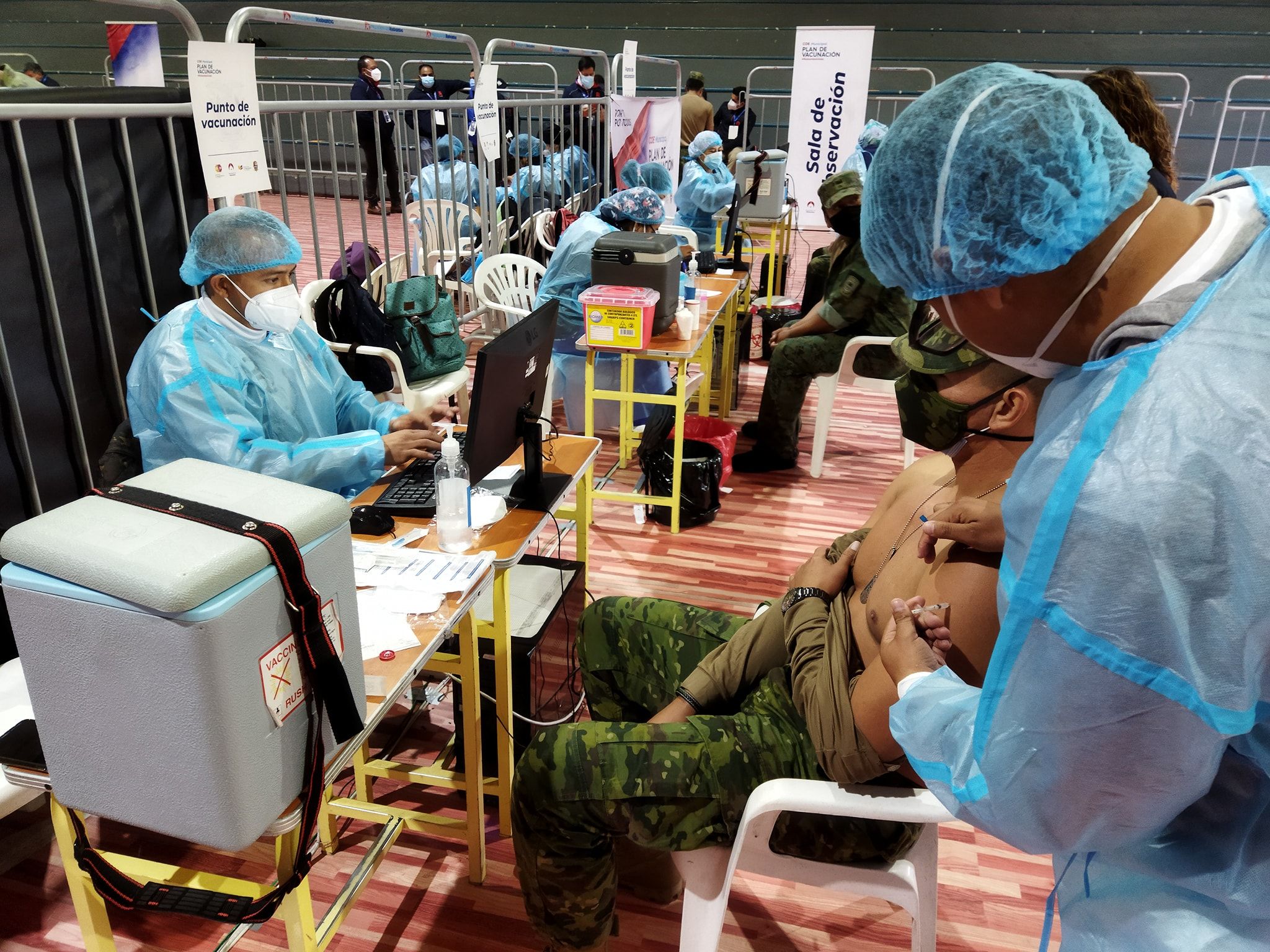 Entre el fin de semana y lunes, personal militar y policial recibió la primera dosis de la vacuna; un reconocimiento al trabajo desplegado desde el aparecimiento de la pandemia, que también deja bajas que lamentar.