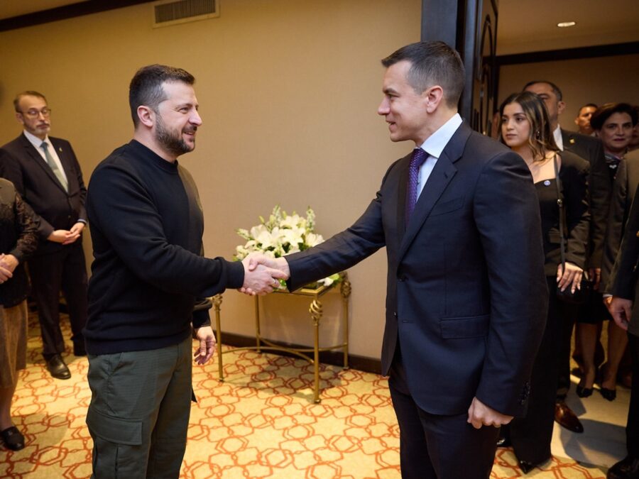El presidente de Ucrania, Volodímir Zelenski, sostuvo una conversación con su homólogo ecuatoriano, Daniel Noboa, en la que lo felicitó por su reciente reelección y expresó su interés en fortalecer las relaciones bilaterales entre ambos países, incluyendo la posibilidad de avanzar hacia un acuerdo de libre comercio.