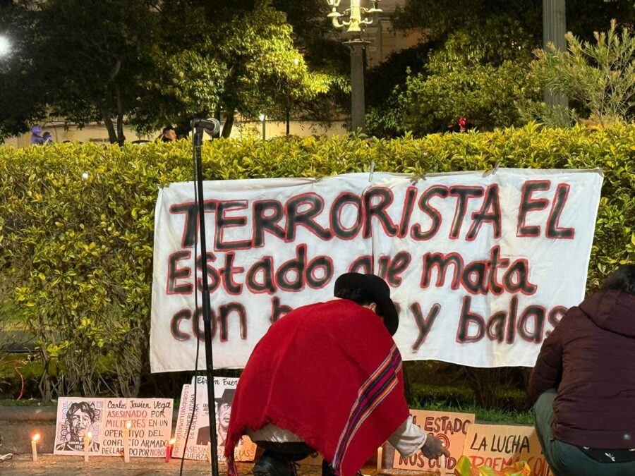 Con pancartas que recordaban la muerte del joven Efraín Fueres y mensajes alusivos a la eliminación del subsidio al diésel, los manifestantes realizaron una jornada pacífica que coincidió con la conmemoración del Día Internacional de la No Violencia. Durante la protesta, se instaló un altar como símbolo de resistencia, “para honrar a quienes han dado su vida en la lucha social”, explicó María Tenesaca, representante indígena de Chimborazo.