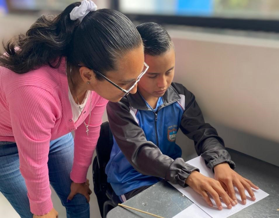 La docente Tania Isabel Hidalgo Escobar, de la provincia de Pastaza, ha enfocado sus 11 años de carrera en fortalecer la inclusión educativa. Su trabajo con estudiantes con discapacidad, especialmente en el uso del sistema braille, es una muestra de su dedicación y sensibilidad.